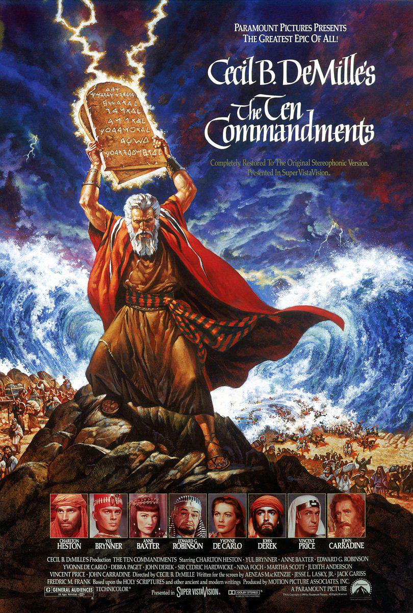 电影《十诫》在影史上有着不可动摇地位,取材自《旧约圣经》的《出埃及记》,讲述了犹太先知摩西(查尔登·海斯顿饰)的一生。在经历各种苦难考验后,上帝耶和华将“十诫”授予摩西,并赐予力量于摩西。摩西领导饱受苦难的希伯来人出走埃及,穿越红海,重新建立新的生活。 1956年 由派 拉蒙电影公司制作,由打造好莱坞黄金时代的导演塞西尔·B·戴米尔执导的史诗电影《十诫》,荣获1957年第29届奥斯卡金像奖最佳音效、最佳剪辑、最佳服装设计、最佳摄影、最佳艺术指导、最佳影片、及最佳特效等多项提名。本片被美国国家电影保护局列为政府收藏作品,是一部不可错过的影史经典之作。