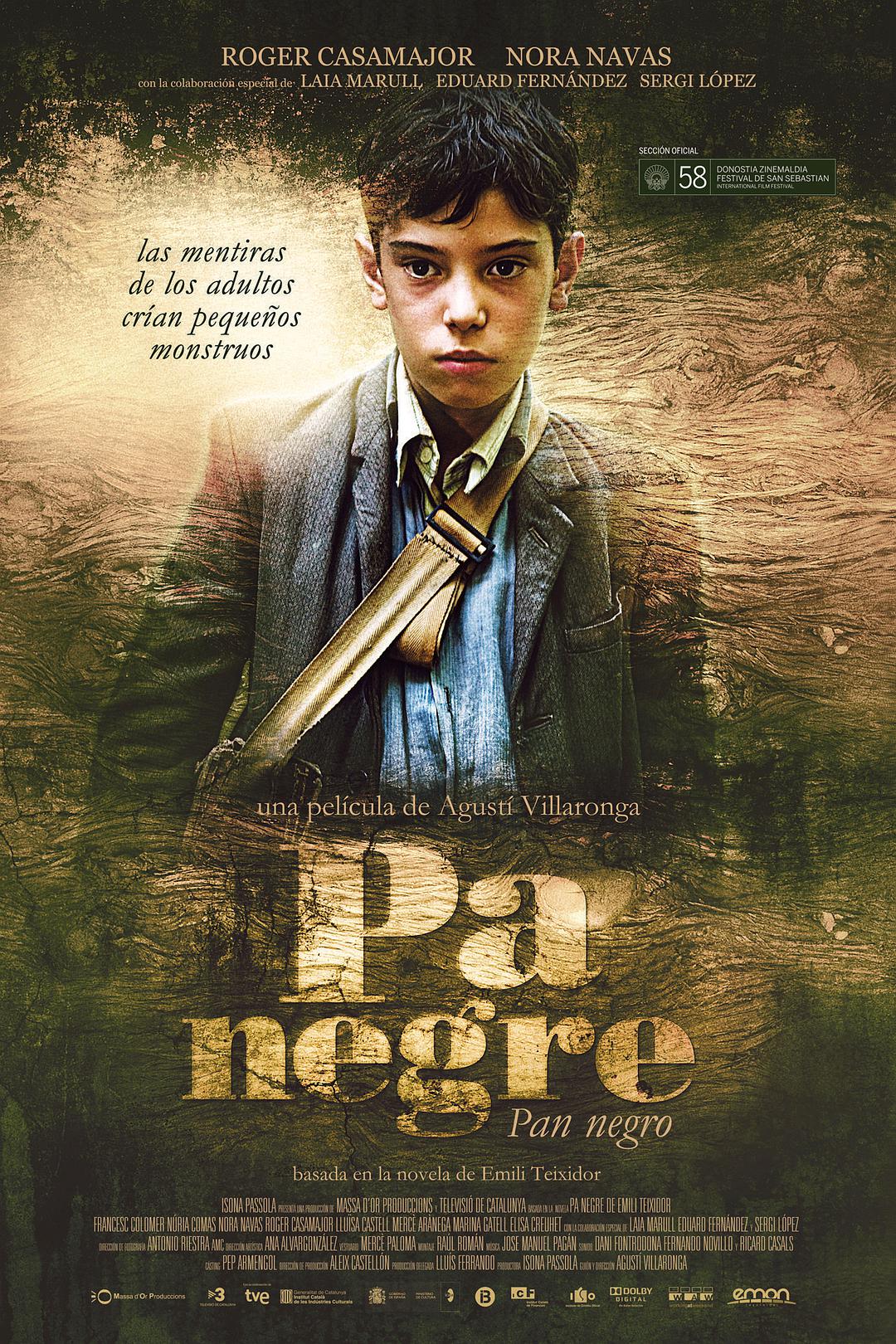 西班牙内战刚刚结束,正值战后创伤的艰难时期。在加泰罗尼亚的乡间,一个属于失败阵营的男孩安德鲁(弗朗塞斯科·科洛莫 Francesc Colomer 饰)在丛林中发现了一对父子的尸体。然而当局竟把罪名加到了安德鲁父亲法利奥尔(罗杰·卡萨梅杰 Roger Casamajor 饰)的头上,让他成为无辜的替罪羊。安德鲁决定独自行动,找到杀害那对父子的真正凶手,揭露事情的真相。安德鲁一路追查,成人世界里种种的阴谋与谎言,让幼小的安德鲁看清了这个扭曲的世界。为了活下去,安德鲁不得不背叛了自己的种族,他也渐渐意识到自己内心深处那个潜藏已久的可怕恶魔。 由西班牙著名导演奥古斯汀·维拉罗伽执导编剧的影片《黑色面包》,横扫2011年第25届西班牙戈雅奖包括最佳影片、最佳导演、最佳摄影、最佳改编剧本在内的多项大奖。