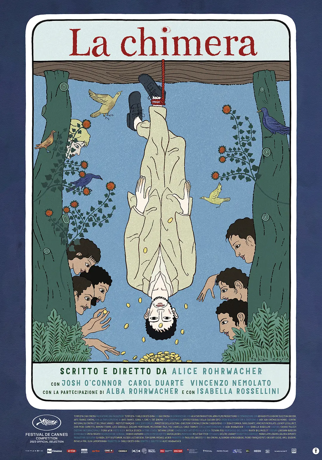 每个人都有自己的“奇美拉”,这是他们试图实现但却无法找到的东西。对于盗墓团伙来说,奇美拉意味着从工作和轻松致富的梦想中得到救赎。对亚瑟(乔什·奥康纳 Josh O'Connor 饰)来说,奇美拉就像他失去的那个女人,贝尼亚米娜。为了找到她,亚瑟挑战无形,到处寻找,进入地 球内部——寻找神话中所说的通往来世的大门。在活人与死人之间、森林与城市之间、庆典与孤独之间的冒险旅程中,这些人物的命运交织在一起,都是为了寻找奇美拉。